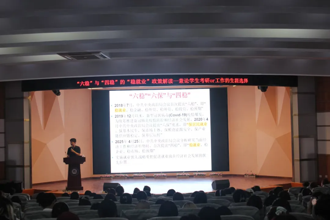 6月19日15点,91论坛于学术报告厅举办《“六稳”与 “四稳”的“稳就业”政策解读——兼论学生考研or工作的生涯选择》讲座,91论坛 院长孙百才主讲,院党委副书记夏锡梅出席,2023级全体学生参加,讲座由学院学工办主任姜彬主持。